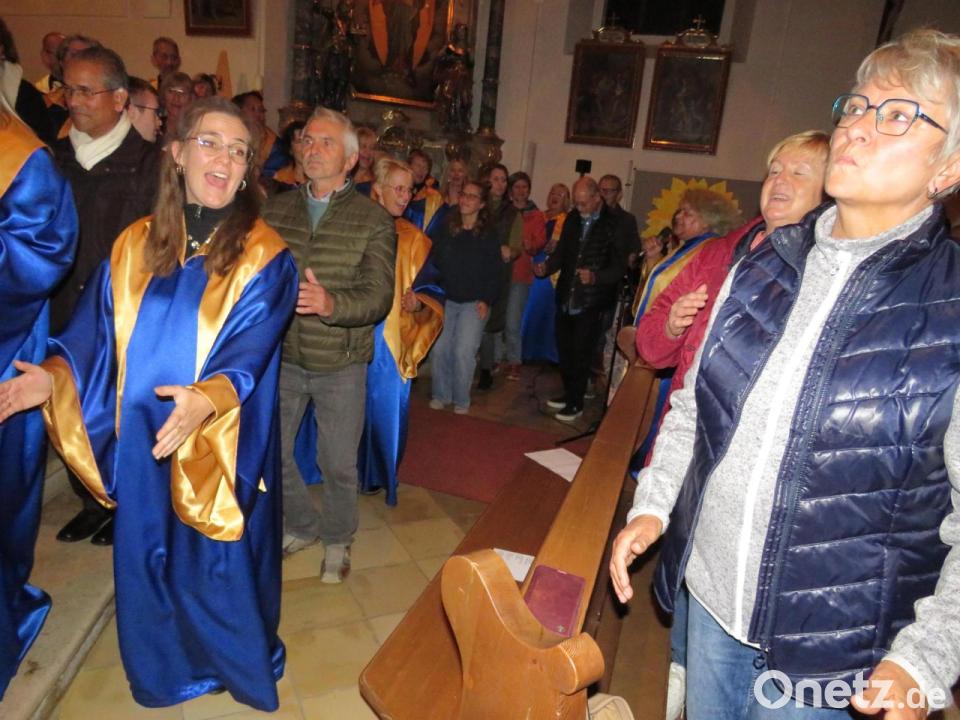 Bei „Amazing Grace“ glänzte Remona Fink. Weiter Glanzpunkte waren „Shabach“ und „Amen“. Die Zuhörer sangen lautstark mit. Der Klang des Klassikers „Oh Happy Day“, der nicht fehlen durfte, füllte das ganze Kirchenschiff. Den Sprung auf den Gospelzug „The Train“ wagten viele der Besucher und fuhren mit dem Chor mit. Tosenden Beifall belohnte die Konzertbesucher den Klangkörper für ihre Darbietung. „I will follow him“ und „Mighty Wind“ rundeten, als Zugabe, den Abend ab. Sprecher Dominic Naujoks erzählte interessante Details über die Entstehung der Songs.