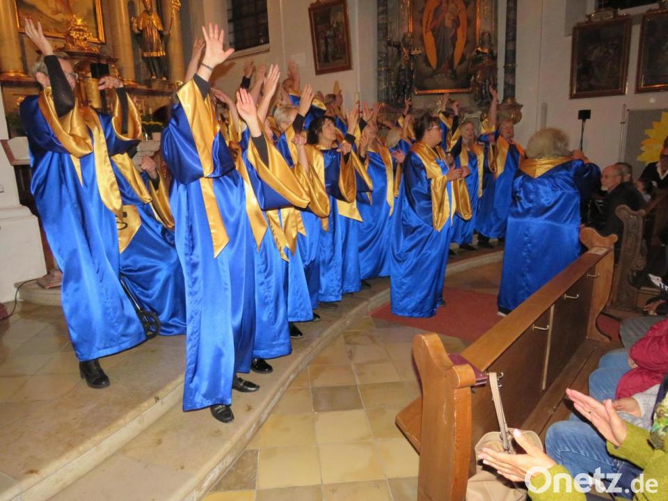 Singend zogen die Sänger mit dem Lied „Ezulwini“ durch den Haupteingang in die Kirche ein. Ihre blau-goldenen Roben passten gut zu dem Stil in der Kirche. Temperamentvoll spornte Chorleiterin Remona Fink die Sängerinnen und Sänger immer wieder an. Mit ihrer prägnanten Stimme setzte sie immer wieder Akzente. In kürzester Zeit sprang der Funken auf die Besucher in der voll besetzten Kirche über. In ihren Liedern erklang immer wieder die Sehnsucht nach der Liebe Gottes und nach Erlösung. Weiter wurde die Gnade und Barmherzigkeit Gottes gegenüber der Menschen besungen.