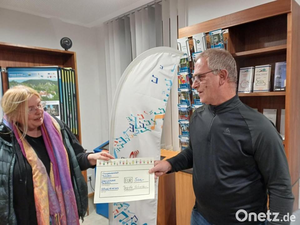 Richard Birkner von der Chorgemeinschaft Parkstein e.V. übergab eine Spende von 500 Euro an Petra Franken von der Ideenwerkstatt Parkstein e.V.