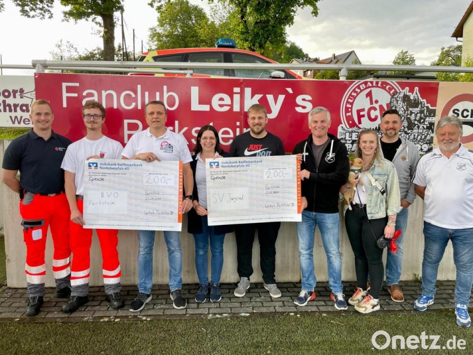 Die Jugendabteilung des SV Parkstein und die Helfer vor Ort (HvO) Parkstein dürfen sich über eine Spende von jeweils 200 Euro freuen, wie aus einer Mitteilung hervorgeht. Der Leiky´s Fanclub Parkstein überreichte die beiden Schecks im Rahmen eines kleinen Treffens am Sportgelände des SV Parkstein.