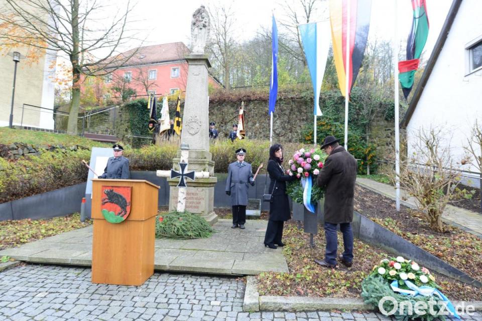 Im Anschluss an die Ansprache im Gotteshaus legten Bürgermeisterin Tanja Schiffmann und der Vorsitzende der Krieger- und Soldatenkameradschaft Parkstein, Erwin Schraml, am Kriegerdenkmal Kränze nieder.