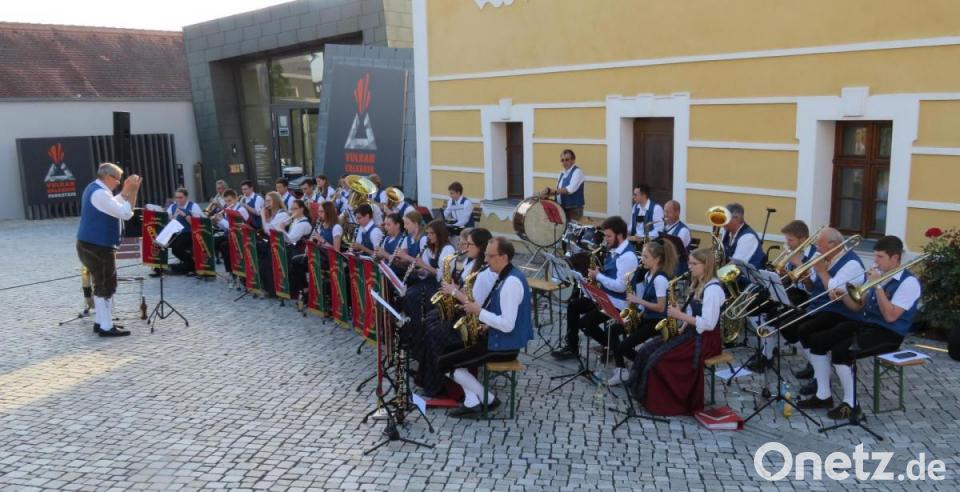 Den Abschluss bildete der „Waldbua-Marsch“ arrangiert vom Dießfurter Werner Schreml und rundete die Musikreise ab. Nicht ohne Zugaben durften die Musiker den Platz vor dem Vulkanmuseum verlassen. Marion Ermer führte gekonnt durch das Programm, und die Vereinsmitglieder der JBK sorgten für das leibliche Wohl. Mit einer Spendenbox wurde für die Unterstützung der geflüchteten Ukrainer gesammelt.