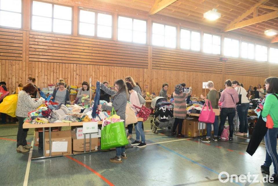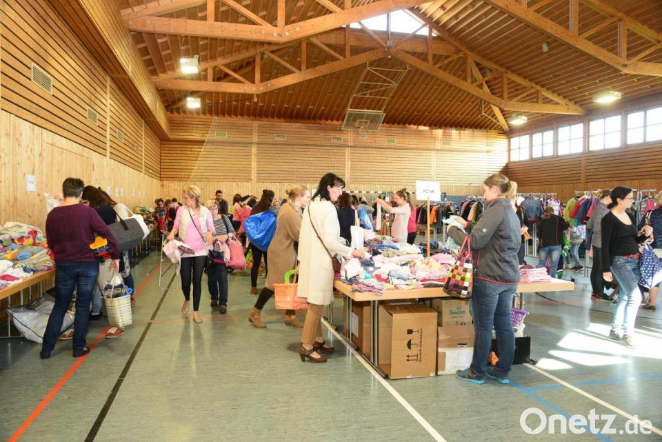 Vielleicht lag es an den frühsommerlichen Temperaturen, die an den Bedarf entsprechender Kleidung erinnerten. Die Kleidungsstücke in den Größen 50 bis 176 waren sauber auf den Tischen geschlichtet oder hängten den Größen nach auf Kleiderbügeln. Jeder der 120 Anbieter hatte 76 Nummern für seine zum Verkauf stehenden Artikel bekommen, sodass das Angebot riesig war. An den Seitenwänden standen die Spielgeräte. Außerdem gab es Spielsachen en masse. Im Angebot waren auch viele Artikel für schwangere Frauen. Zur Stärkung bot das Kinderhaus St. Pankratius seinen Besuchern Kaffee und Kuchen an. Kinderhausleiterin Jutta Kellner-Schreml dankte der Familie Winkler für die Überlassung der Halle.
