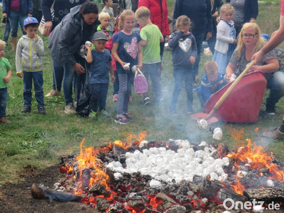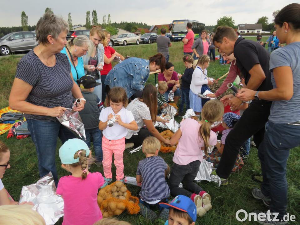 Mit Decken, Gartenstühlen und Liegen machten sie es sich auf dem Acker der Familie Hösl in Schwand bequem. Leiterin Jutta Kellner war begeistert über den guten Zuspruch. Miteinander verpackten Kinder und Erwachsene die Kartoffeln, die der Elternbeirat zur Verfügung gestellt hatte, in Alufolie. Mit viel Schwung landeten sie im lodernden Feuer. Kinder der Krippe sangen zur Einstimmung ein Kartoffellied. Die Kindergartenkinder unterhielten die Erwachsenen mit dem Spiel vom Kartoffelkönig. Nach dem Garen verspeisten alle die Erdäpfel mit den von den Eltern mitgebrachten Beilagen.