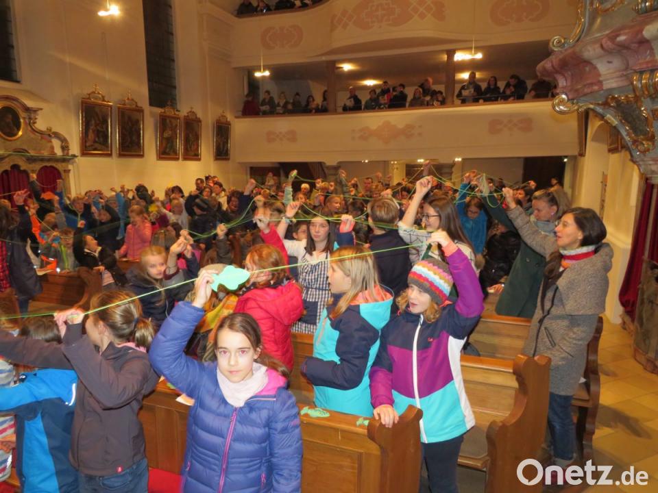 Gemeinsam wurde der Tag mit einer Andacht in der Pfarrkirche begonnen. Es folgten Theaterarbeit, Gruppenarbeiten und ein Stationenlauf mit Schwungtuch, Angelspiel, Lieder mit Bewegung oder Hindernissparcours. Mit Figuren wurde das Leben Petrus nachgestellt. 15 Gruppenleiter betreuten die Kinder. Im Theaterspiel unter der Regie der 17-jährigen Anna Reichl zeigten Georg Weber (Petrus), Jonas Uschold (Jesus), Noah Schraml, Emma Rast, Simon Reichl (alle Jünger), Leonie Haydn, Yannick Bösl (beide Soldaten), Leni Götz, Johanna Haydn, Hannah Schraml und Aurelia Bodenmeier (alle Mägde) eine eindrucksvolle Vorstellung. Die musikalische Begleitung übernahmen unter der Leitung von Ruth Reichl (Klavier) Barbara Sparrer, Conny Motsch (beide Gitarre), Jakob Dorner (Gesang und Schlagzeug), Josef Langgärtner (E-Gitarre), Karin Haydn (Gesang und Querflöte), Hermann Meier und Kerstin Bäumler (beide Gesang). Ein Netz aus grünem Seil symbolisierte beim Schlusslied den Menschenfischer Petrus. Pfarrer Tharmakkan Penoraj und Pfarrer Manuel Sauer segneten die Kinder und überreichten kleine Fische zum Andenken. Das Vorbereitungsteam Monika Meier, Ruth Reichl und Karin Haydn war mit dem Verlauf des Tags sehr zufrieden.