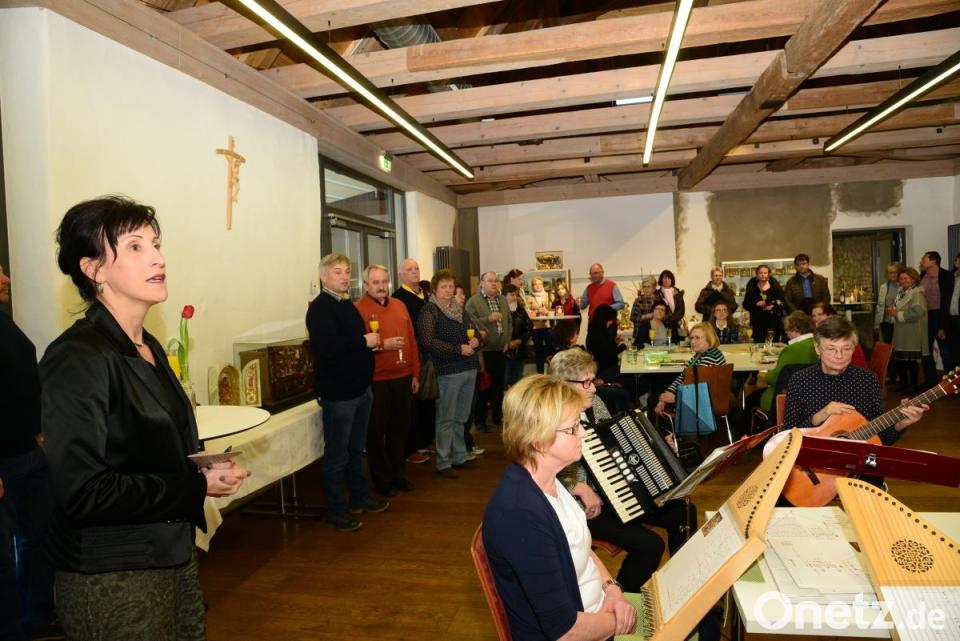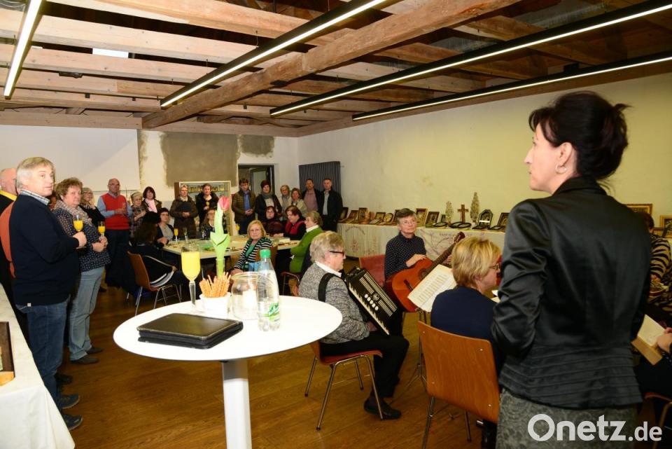 Die Musikgruppe „Vielsaitig“ umrahmte die Vernissage, die mit der gemeinsam gesungenen ersten Strophe des „Parkstein-Liedes“ offiziell endete. Dann hatten die Besucher Gelegenheit, die im Steinstadl ausgestellten Klosterarbeiten in aller Ruhe zu bewundern.