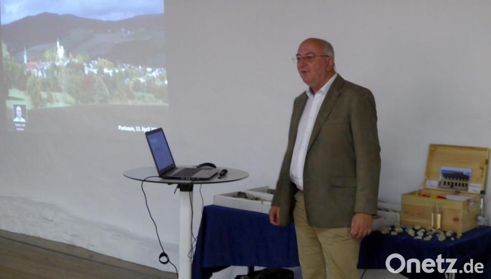 Zunächst zeigte er anhand einer Übersichtskarte den vielfältigen geologischen Aufbau der Region auf. Im Osten liegt von der tschechischen Grenze bis an die große, den Landkreis Neustadt/WN halbierende geologisch-tektonische Abbruchlinie, die sogenannte Fränkische Linie, das Grundgebirge mit Gneisen, Amphiboliten und anderen Mineralien. Es ist durchzogen von Basalten und Graniten. Deren Bestandteile merkt man sich mit dem Spruch: „Feldspat, Quarz und Glimmer, die drei vergess ich nimmer.“ Westlich davon breitet sich das jüngere Deckgebirge mit reinen Ablagerungsgesteinen mit Sand- und Tonschichten sowie Kalkgestein aus.