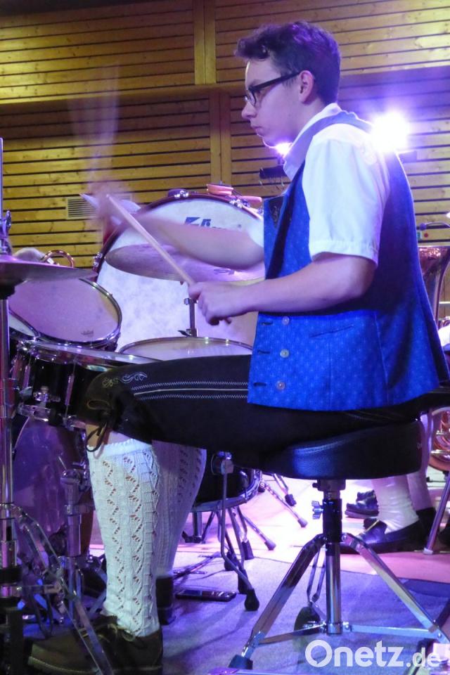 Wirkungsvoll vorgetragen wurde „So schön ist Blasmusik“, und Nico Hundhammer zeigte sein Können mit einem Solo bei „Ich und mein Schlagzeug“.