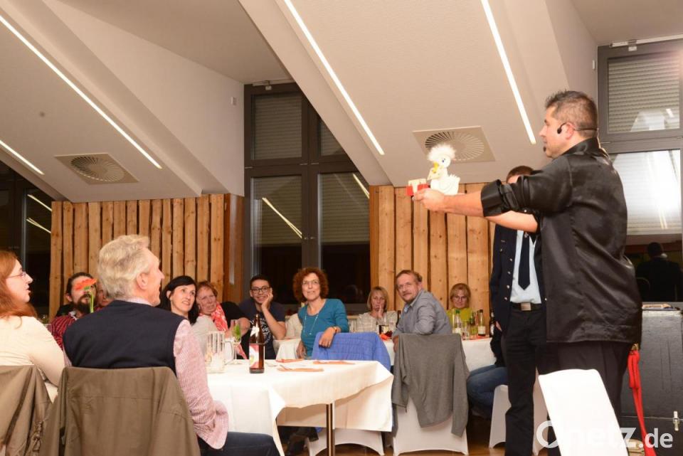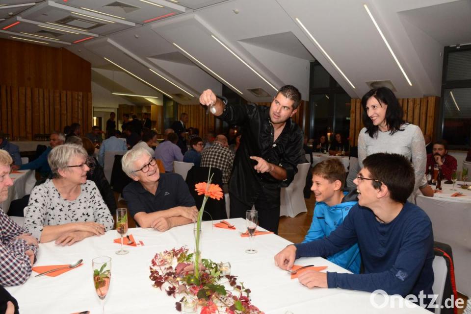 Später holte der „Zauberer vom Hexenberg“ auch eine von einem Gast auserwählte Karte aus einem kleinen Säckchen, dass symbolisch das Gefängnis von Alcatraz war. Denn auf der Karte war kein anderer zu sehen als Al Capone. Bereits vor dem gemeinsamen Abendessen, machte Wolfgang Götz mit seinem Zauberschrank eine Runde durch die Tische und faszinierte die „Ehrenamtler“ mit seinen Tricks.