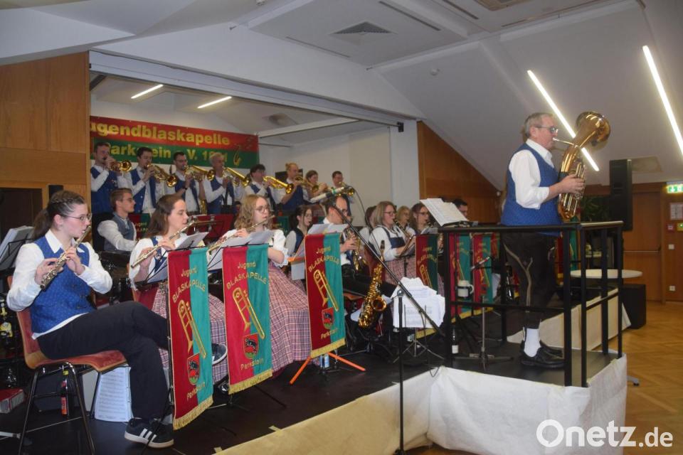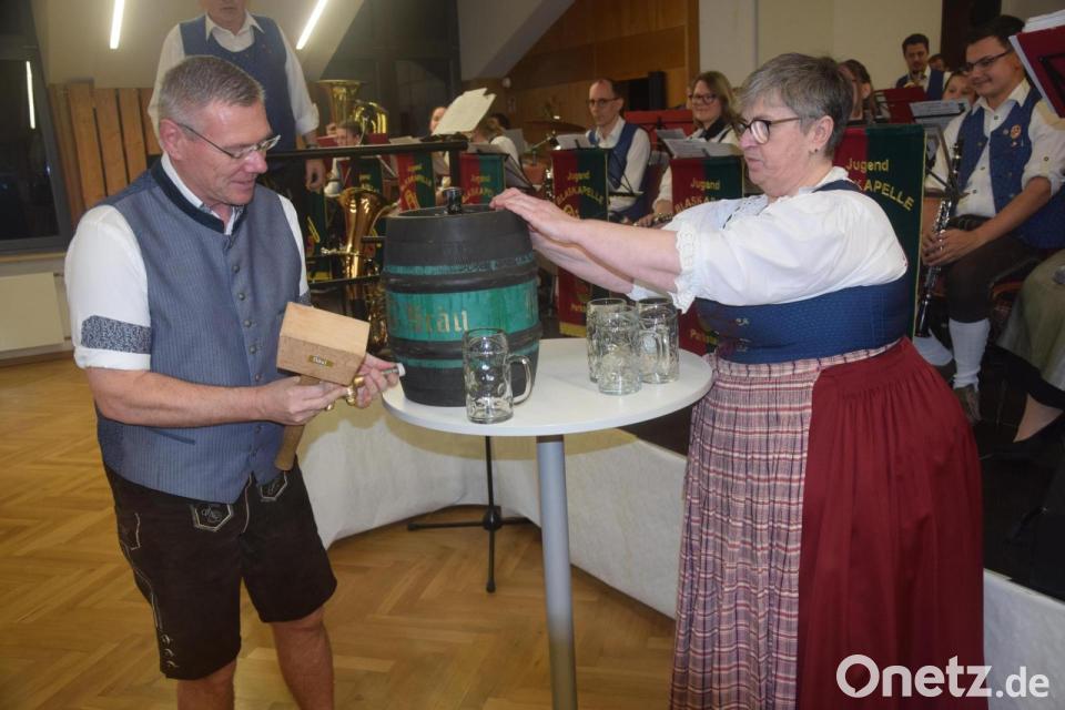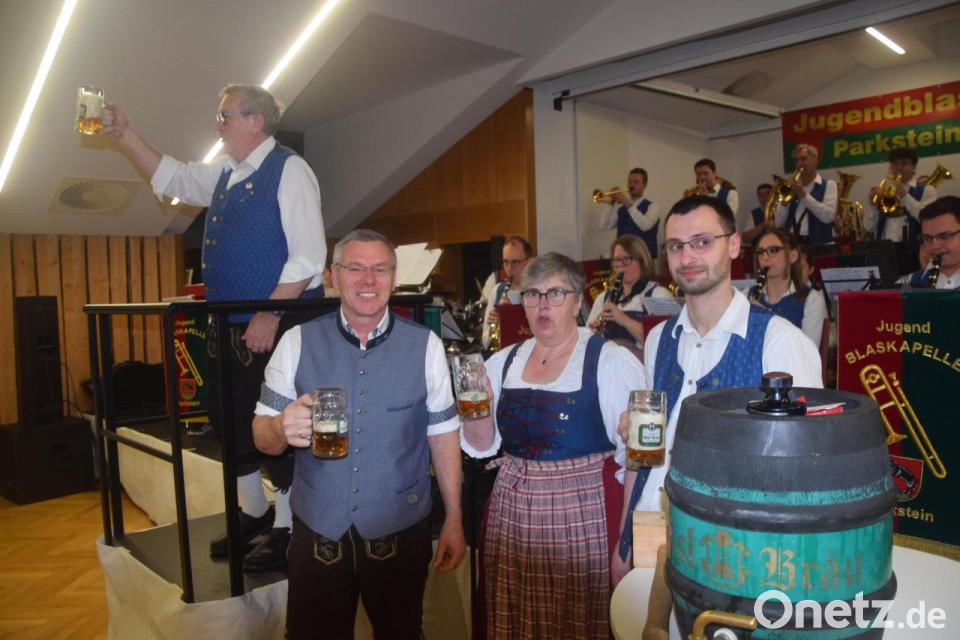 Starkbierfest der Jugendblaskapelle im Festsaal. Dies ließen sich über 150 Besucher nicht entgehen, die auf den von der Marktgemeinde neu angeschafften Sitzgarnituren Platz nahmen. Die 30 Musikerinnen und Musiker um Dirigent Alfons Steiner zeigten schon mit dem Bayerischen Difiliermarsch zum Auftakt die musikalische Richtung auf, die dann immer wieder einen Ausflug nach Böhmen machte. Vorsitzende Gisela Witt freute sich auch über die vielen Gäste von Kapellen aus der Umgebung. Sie kündigte einen super Abend bei "Süffisus" an. Den Namen hatte die Hösl-Brauerei seinem Starkbier verpasst. Dass der Süffisus süffig war, zeigte sich gleich nach dem anzapfen des ersten Fasses durch Bürgermeister Reinhard Sollfrank beim ersten Prost von Sollfrank und Witt mit Dirigent Steiner und Musiker Dominik Treml.
