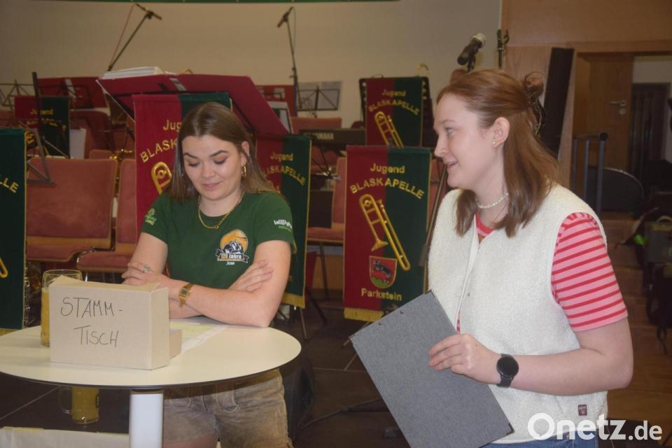 Dass der starke Trank auch die richtige Unterlage bekam, dafür sorgten die Frauen aus der Küche. Wurstsalat, warmer Leberkäse mit Brezn, schön garnierte Käseteller oder einen Durchdradn mit Brezn, da griffen die Besucher gerne zu. Wer nicht gerade Messer und Gabel in der Hand hatte, benutzt beide Hände zum Mitklatschen, denn die Musiker und Musikerinnen um Steiner griffen von Anfang an in die Instrumente, als wenn es schon das Finale wäre. Derbleckn war es nicht, da machten es im Laufe des Abends Leni Götz und Josefine Spörrer etwas seichter, aber mit viel Hintergrund bei ihrem Auftritt, mit dem Stammtisch-Gschmader. Authentische Gespräche aus dem Jannerwirtshaus, in dem seit Erfindung der Friteuse die Zeit still gestanden ist. Umgehungsstraße, Kreisverkehr und Kläranlage die aktuellen Themen. Aber auch gähnende Leere am Marktplatz, seitdem das berüchtigte Fenster "Gerlinde sieht alles", dich gemacht hat. Beim umjubelten Schluss zogen die zwei Mädls das Resümee, dass Parkstein mehr als nur ein Ort sei, es ist ein Zustand. Nach dem Auftritt eröffnete dann auch gleich der Burschenverein den Barbetrieb. Wem der Süffisus nicht stark genug war, der konnte hier nachlegen.