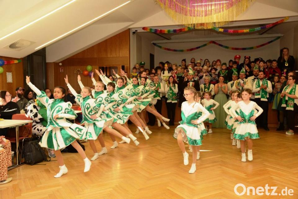 Auch fehlte zur Einstimmung eine Polonaise der Kinder nicht. Dann marschierte der Faschingsverein Hammerles mit Prinzenpaar, Hofstaat und den Garden ein. Allein der Kindergarde Hammerles gehören derzeit 21 Kinder an. Grund genug, die anwesenden Kinder zu bitten, zum Zuschauen auf die Bühne des Festsaals zu gehen, weil aller Platz für die Tänzerinnen und Tänzer gebraucht wurde. Viel Beifall der Besucher für alle Garden, für das Prinzenpaar Patrick I. und Stefanie I. für ihre Tanzeinlage, auch für die Tanzmariechen Selina und Angelina.