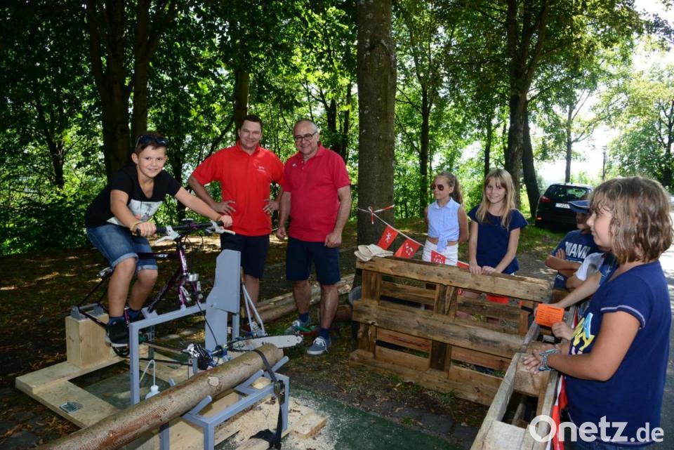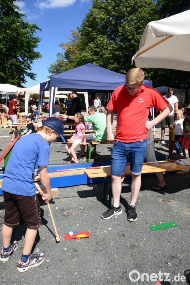 Das Kinderfest ist alljährlich einer der Höhepunkte im Sommerkalender des Markts. Den Eltern gibt das Fest Gewissheit, dass die Kinder bei den Spielen bestens betreut werden. So konnten sich die Mädchen und Buben beim Kegeln, oder auf einer „Mini-Golf-Anlage“ versuchen oder mit viel Geschick einen „Bären“ mit Bällen füttern. Der Clou aber war ein Fahrrad, das Christoph Witt mit viel technischem Sachverstand mit einer Kettensäge verbunden hatte. Damit konnten sich die Kinder, aber auch die Erwachsenen eine Scheibe von einem Baumstamm abschneiden. Spannend war´s natürlich, weil gestoppt wurden, wie lange jeder strampeln musste, bis die Scheibe war.