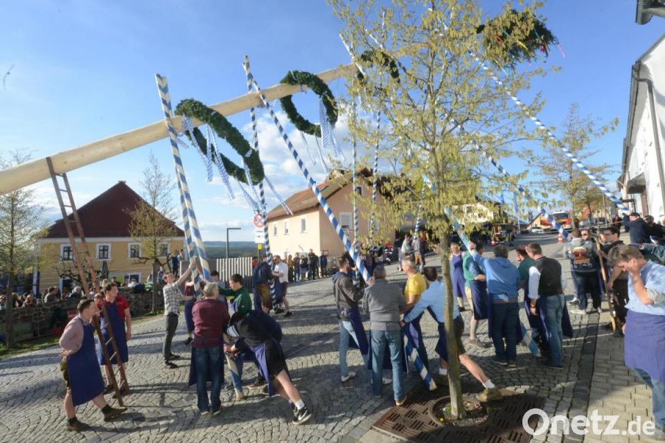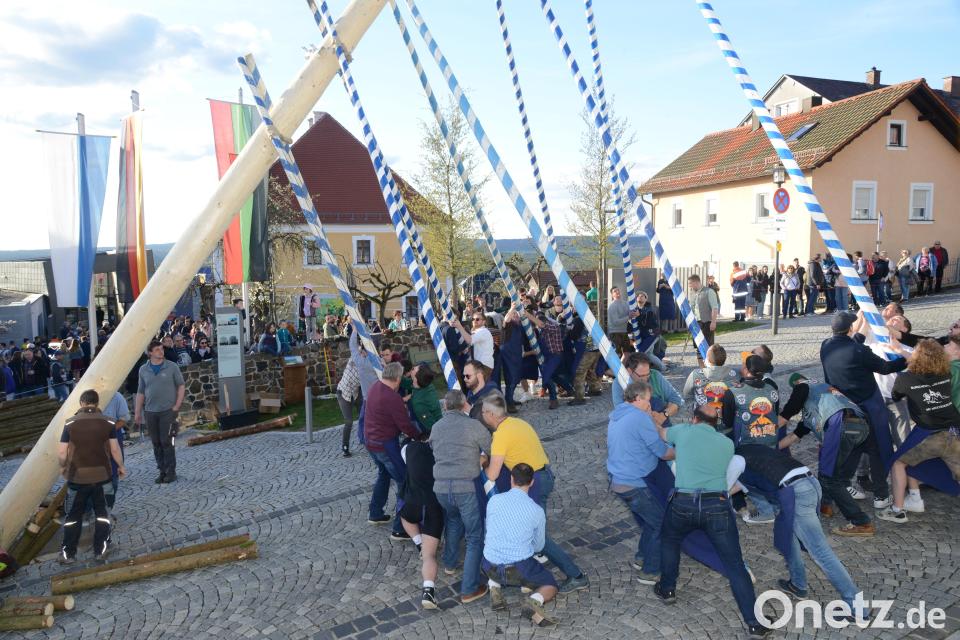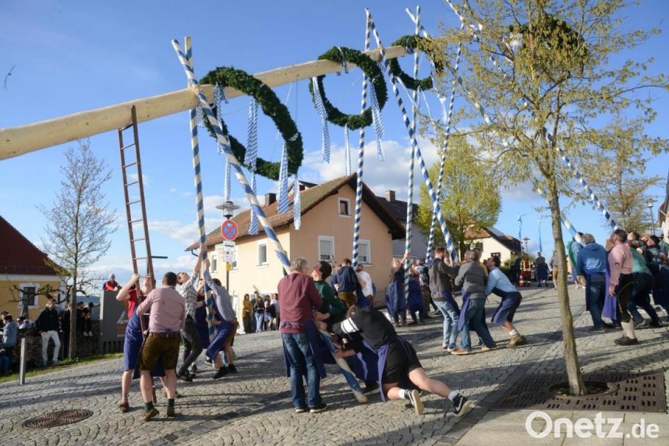 Der Maibaum am Parksteiner Marktplatz mit über 30 Meter Höhe steht wieder fest verankert in seiner Halterung. Gute eineinhalb Stunden brauchten die vielen Helfer, um diesen Baum mit Schwalben nach oben zu stemmen. Der Katholische Burschenverein hatte dazu auch die „Burschen“ der anderen Parksteiner Vereine um Unterstützung gebeten. Auf das laute Kommando „Hauruck“ brachten die Helfer den Baum schrittweise in die Senkrrchte. Auf dem Platz vor dem Landrichterschloss beobachteten bei wunderbarem Sonnenschein viele Parksteiner das Bemühen um den Baum , genossen Gegrilltes und frisches Bier. Das alles trug dazu bei, dass das Maibaumaufstellen einen kleinen Volksfestcharakter hatte. Am Abend dann der Maitanz mit dem „Himmelfahrtskommando“ im Festsaal.