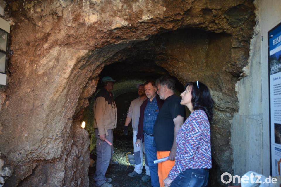 "Wichtig ist, dass der Zugangsbogen wieder hergestellt wird und keine weiteren herabfallenden Gesteinsbrocken eine Gefahr bedeuten können", hieß es in der Mitteilung weiter. Die Bau- und Sanierungsarbeiten dauern rund eine Woche an. Bürgermeisterin Tanja Schiffmann überzeugte sich vor Ort über den Zustand. Es sei notwendig, dass die Keller auch weiterhin regelmäßig gewartet werden müsse. In Kürze würden alle drei Felsenkeller wieder für Besucher betretbar sein.