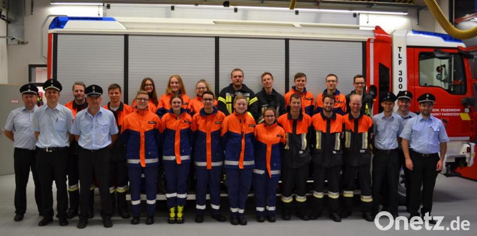 Nach etwa eineinhalb Stunden war es geschafft: Alle Teilnehmer hatten die Prüfung erfolgreich gemeistert. Nach der Zeugnisvergabe durch dkie Kreisbrandmeister Götz und Hartl dankte Fabian Schreffl allen Teilnehmern für ihr Engagement und hob die gute Zusammenarbeit der beiden Wehren Parkstein und Hammerles hervor. Ferner verwies er auf die, ebenfalls in einem Jahr anstehende, Abschlussprüfung der Modularen Truppausbildung (früher Truppführerausbildung). Nach dem Gruppenfoto in der Fahrzeughalle ließ man den Abend im Floriansstüberl gemütlich ausklingen.