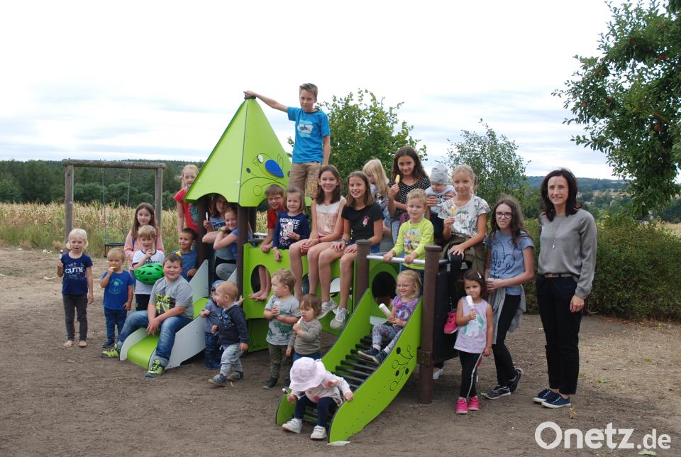 (bey) Am Spielplatz „Schutzengel“ sorgt ein neues Spielgerät mit Mäusetunnel, Treppe, Rutsche, Maltafel und einem integrierten Motorikcenter für Begeisterung beim Nachwuchs. Aufgrund der geringen Fallhöhe ist das Gerät auch für die Kleinsten bestens geeignet. Die Aufstellung übernahm der gemeindliche Bauhof. Bei der Einweihung sicherte Bürgermeisterin Tanja Schiffmann den Eltern zu, für eine bessere Beschattung des Spielplatzes im Herbst weitere Bäume zu pflanzen. Am Sandkasten soll das bisherige Spielhäuschen, das wegen Mängel entfernt wurde, einen attraktiven Ersatz bekommen. Zur Einweihung gab es von der Bürgermeisterin für die Kinder Eis und Gummibärchen.