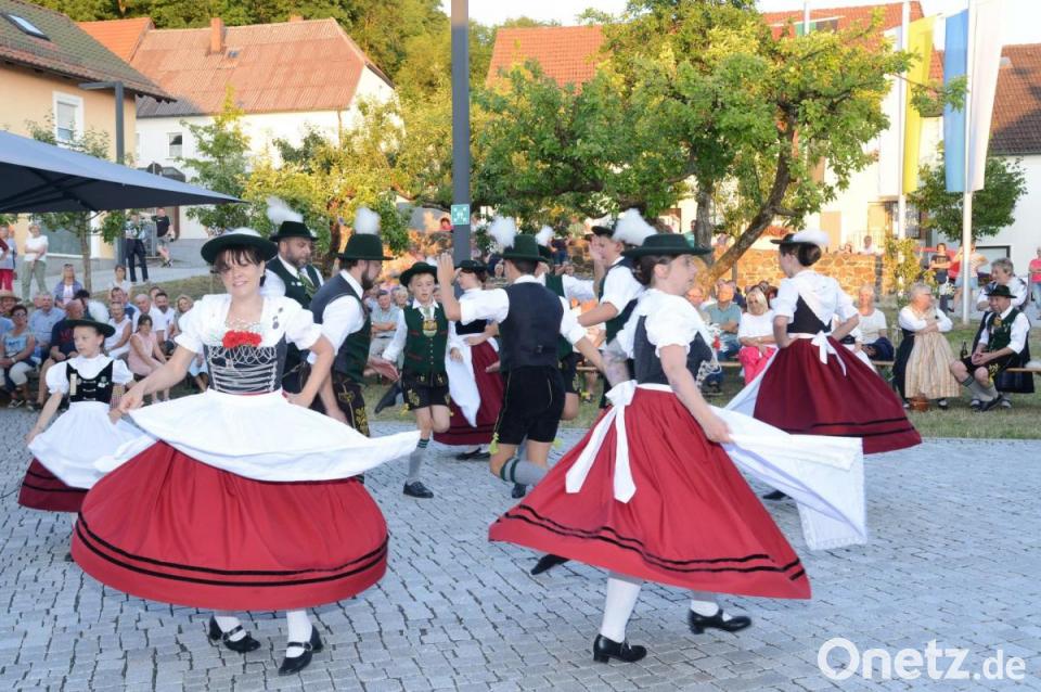 Die Jugendblaskapelle Parkstein, die Schuhplattler „D´Waldnaabtaler“ aus Windischeschenbach und die „Großkonreuther Alphornbläser“ leiteten mit einem über zweistündigen abwechslungsreichen Programm die Feier zum zehnjährigen Bestehen des „Vulkanerlebnisses Parkstein“ ein. Einziger Nachteil: Vor dem Landrichterschloss war Schatten am Freitagabend manchmal rar.