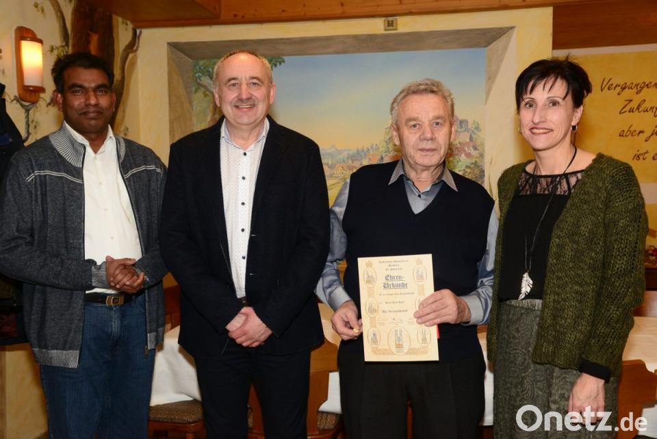 Martin Lang gab einen einwandfreien Kassenbericht ab. Standen im Vorjahr noch 36 Namen von Mitgliedern auf der Ehrungsliste, so war in diesem Jahr Josef Hauer alleine. Simmerl, Pfarrer Pennoraj Thamarkkan und Bürgermeisterin Tanja Schiffmann würdigten ihn für 40-jährige Mitgliedschaft mit Urkunde und goldener Ehrennadel.