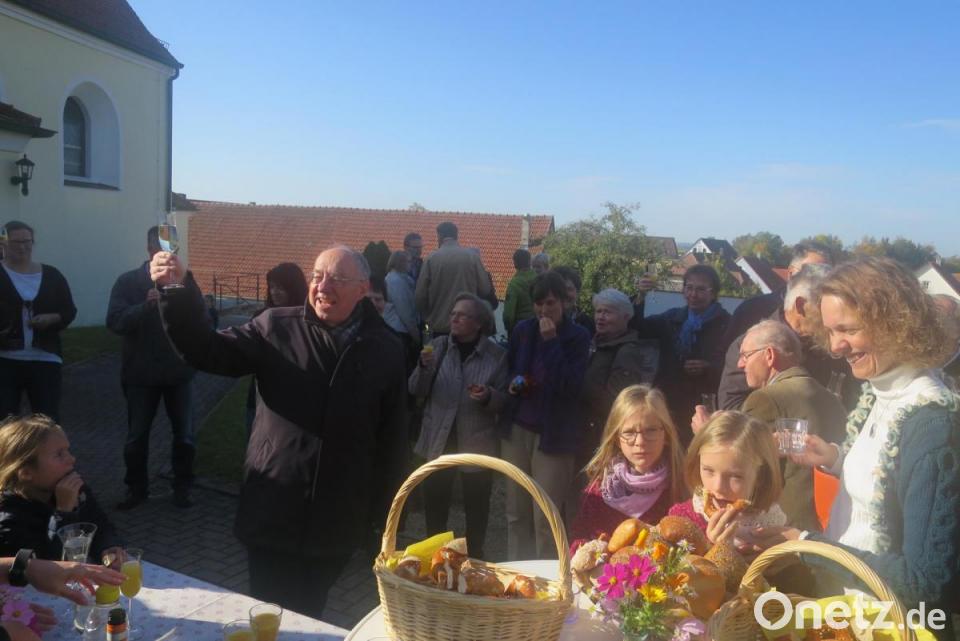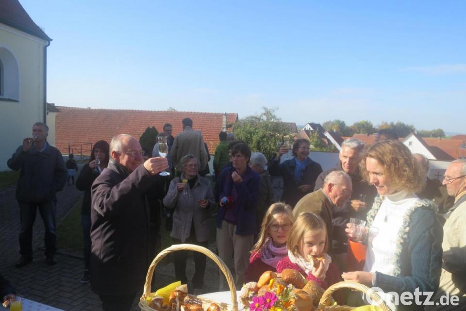 Diesem "besten Priester" gratulierten die Gläubigen im Anschluss an den Gottesdienst bei einem Stehempfang, den der Benefiziumsrat vorbereitet hatte. Als kleiner Dank erhielt Ludwig Gradl einen Geschenkkorb mit Waren aus der Region.