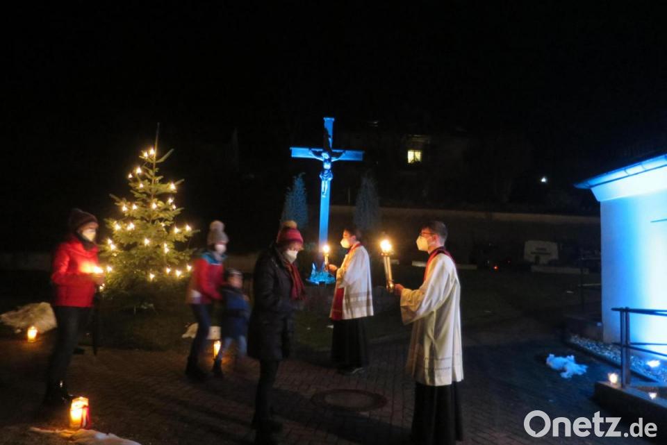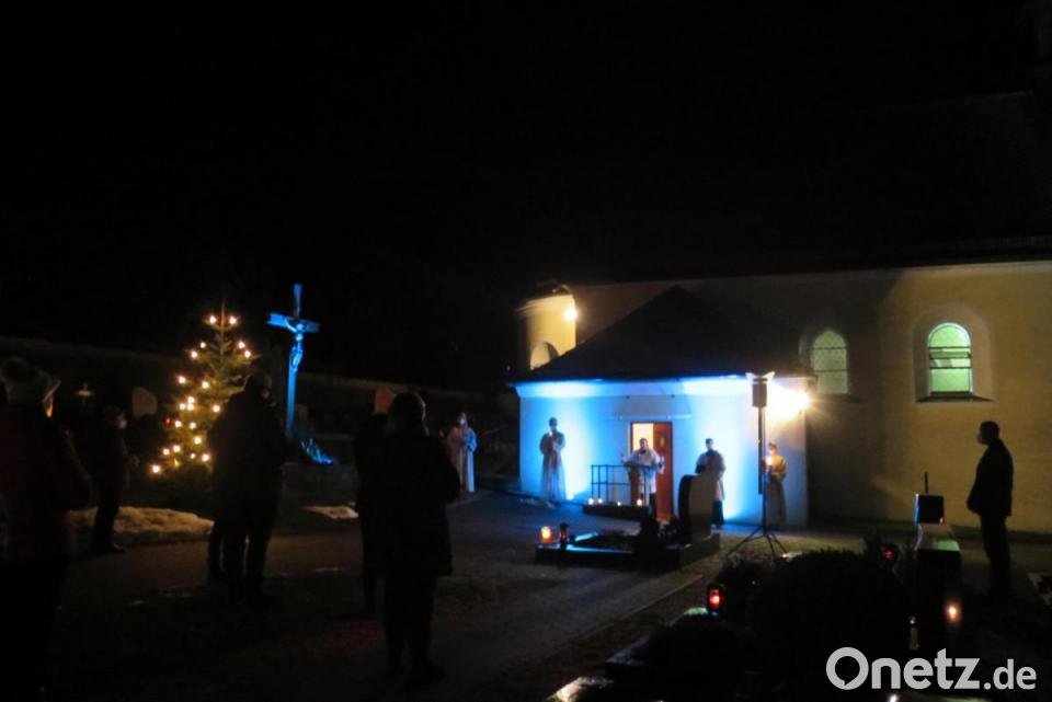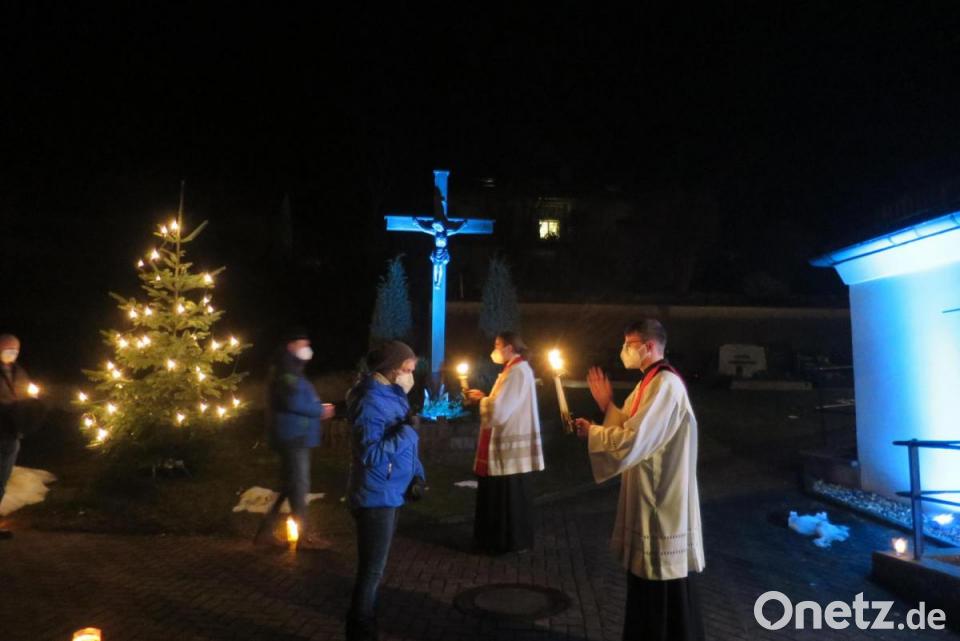 Eine besondere Lichtmess-Feier erlebten die Gläubigen des Kuratbenefiziums Paulsdorf, als sie 40 Tage nach Weihnachten das Fest der Erscheinung des Herrn begingen. Unter freiem Himmel fand vor der stimmungsvoll beleuchteten Kirche eine Andacht statt, die Kaplan Florian Weindler hielt. Dabei segnete er die Kerzen, die das ganze Jahr über in der Kirche und in den Häusern entzündet werden. Mesnerin Frieda Heldmann hatte dazu einen prächtigen Altar aufgebaut, es erklang feierliche Orgelmusik. Da wegen der Corona-Pandemie keine Kerzen verteilt werden durften, brachten die Gläubigen diese selbst mit. Der Kerzenschein und der leuchtende Christbaum bildeten eine beeindruckende Atmosphäre, die dem Namen Lichtmess-Feier alle Ehre machte. In enger Verbindung mit Maria Lichtmess steht das Fest des heiligen Blasius am 3. Februar. Diakon Bastian Neumann und Kaplan Florian Weindler erteilten am Ende der Andacht den entsprechenden Segen.