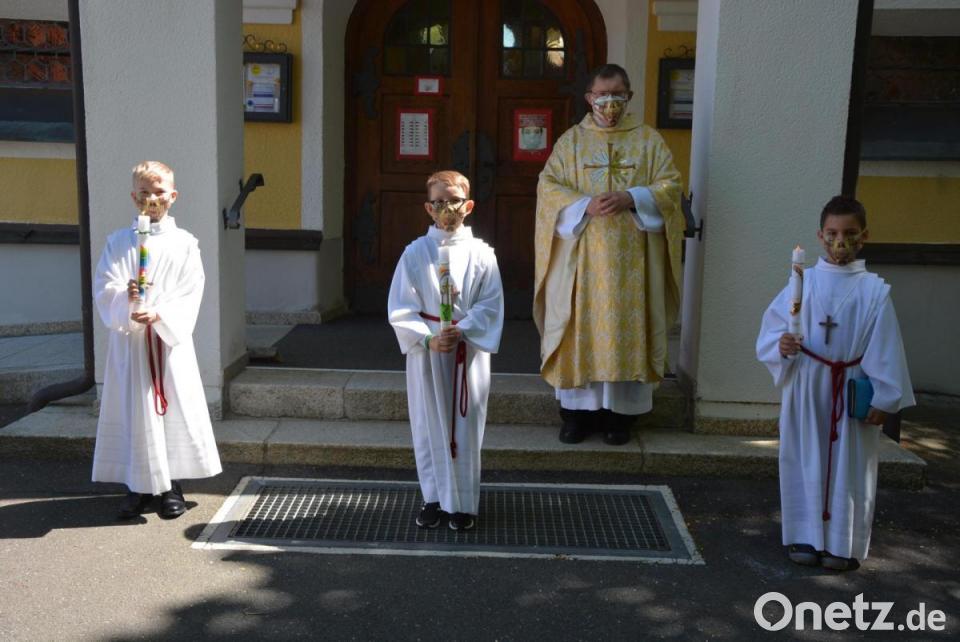 Etwas verspätet als geplant feierten drei Kinder ihre Erstkommunion in der Pfarrei Herz Jesu Pechbrunn. Eigentlich war der Gottesdienst mit Pfarrer Robert Ploß für den 9. Mai angesetzt, doch wegen einer Corona-Quarantäne folgte eine Verschiebung.