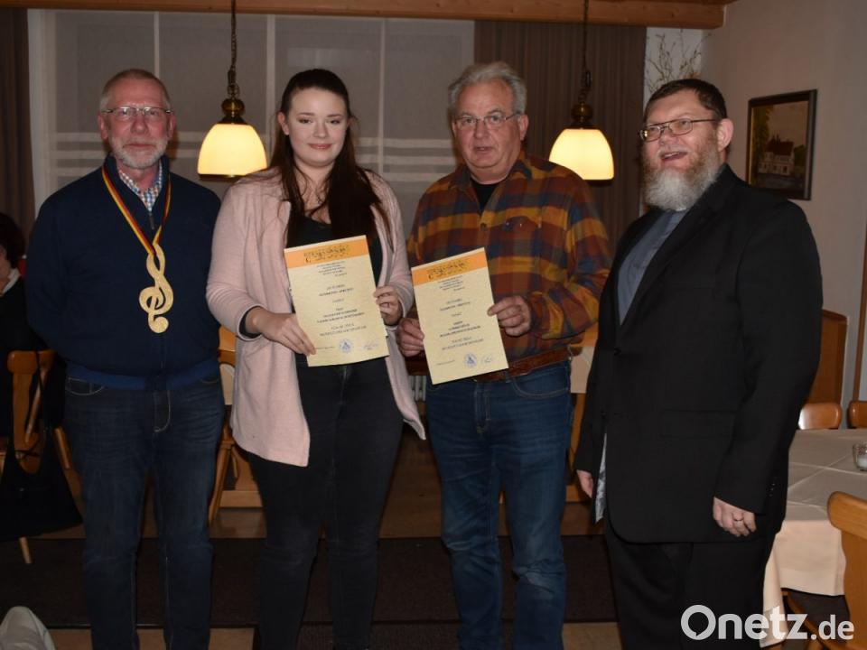Brand äußerte sich positiv über die gute Zusammenarbeit mit dem neuen Pfarrer Ploß. Seine Rede beendet der Chorleiter mit einem Dank an alle Mitglieder der Chorgemeinschaft. Dabei würdigte der Sprecher den Einsatz derer, die zusätzlich zum Gesang auch andere Aufgaben für den Chor übernahmen. Danach schlossen sich die Ehrungen für langjährige Sänger in der Chorgemeinschaft an. ,,Wer viel leistet, darf auch geehrt werden!" - so lobte Pfarrer Ploß Norbert Höfer, der für 25 Jahre aktives Singen im Kirchenchor ausgezeichnet wurde. Zudem wurde Madeleine Schneider für fünf aktive Jahre ausgezeichnet.