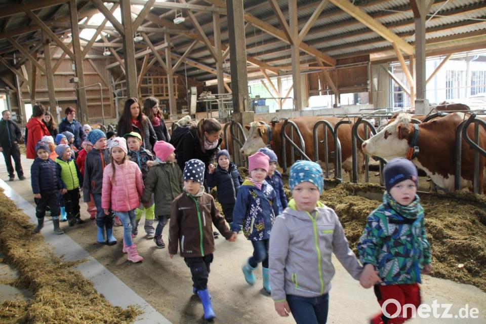 Schon im Vorfeld des Besuches beim „Schwaighofbauern“ sind die Kinder über dem Beruf des Landwirts informiert worden. Beim Rundgang durch die Stallungen staunten Buben, Mädchen und Erzieherinnen, wie viele Rinder und Kälber von der Familie Salomon versorgt werden müssen. Diese hatte für die Besucher ein tolles Programm auf die Beine gestellt: So durften die Kinder nicht nur beim Ausbuttern zuschauen, sondern die frische Butter auch gleich auf Schnittlauch-, Honig-, und Radieschenbroten probieren. Auch der Melkstand wurde besucht.