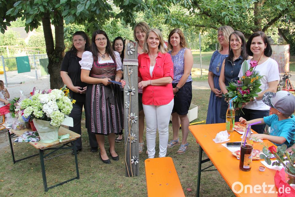 Mit ihrem stets freundlichen und fröhlichen Wesen erfreute sich Sonja Reitinger großer Beliebtheit. Dies spiegelte sich in den Dankesworten aller Beteiligten wider. Den Anfang dazu machten natürlich die Kinder mit einem Gedicht. Mit je einer überreichten Blume aus dem eigenen Garten bescherten sie ihrer Sonja einen bunten Blumenstrauß. Die frühere Kindergartenleiterin und Erzieherin Edith Hoch sprach den Dank des Personals für die jahrelange kollegiale Zusammenarbeit aus und überreichte ein gemeinsames Geschenk. Die persönliche Verabschiedung von ihren Kolleginnen und einem Praktikanten war ein sehr emotionaler Moment. Großen Dank für die gedeihliche Miteinander zwischen Kindergarten und Elternhaus richtete Christine Blab als Vorsitzende des Elternbeirats an Sonja Reitinger und übergab ein kulinarisches Präsent und zur Erinnerung an die gemeinsame Zeit ein Deko-Objekt. Schulleiterin Ortrud Sperl erinnerte an die ausgezeichnete Zusammenarbeit zwischen Kindergarten und Grundschule, würdigte die optimale Verständigung bei der Erstellung der Kooperationspläne zum Vorteil vor allem der Vorschulkinder und überreichte zusammen mit Klassenleiterin Fiona Hauser-Kroner ein Blumenpräsent zum Dank.