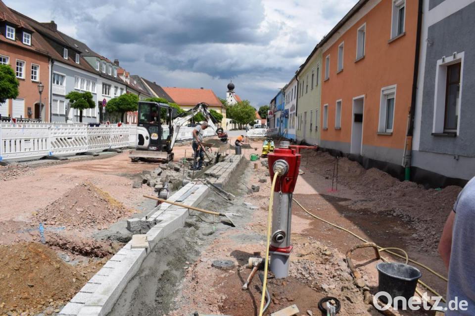 Im Gegenzug beginnen dann die Arbeiten auf der anderen Straßenseite. Für die Verkehrsteilnehmer hat dies zur Folge, dass der Verkehr Richtung A 93 freigegeben wird, dafür aber keine Durchfahrt Richtung Marktplatz mehr möglich ist. Bis zum Bürgerfest, am zweiten Wochenende im Juli, soll diese Regelung störungsfrei laufen.