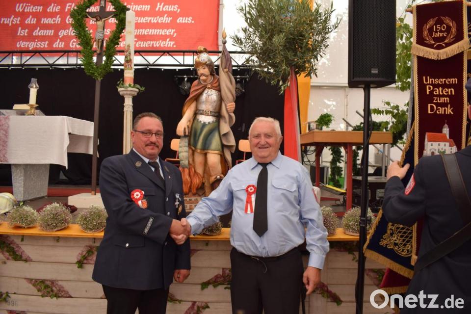 Der heiligen Florian für die Feuerwehr setzt seinem künstlerischen Schaffen die Krone auf. Beim Festgottesdienst des Gründungsfestes segnete Pater Georg die Statue, die im Feuerwehrhaus einen würdigen Platz finden wird. Vorsitzender Markus Muntanjohl bedankte sich bei Franz Paulus für dieses besondere Geschenk, das die enge Bindung des Künstlers zur Feuerwehr zum Ausdruck bringt.