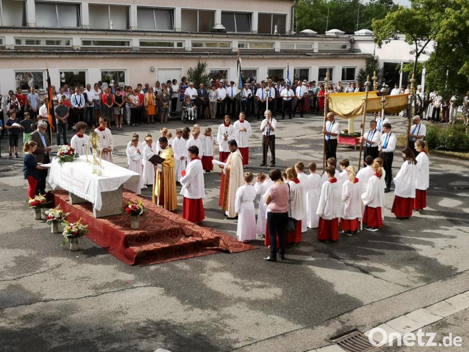 Die im 14. Jahrhundert entstandene Fronleichnamsprozession nehmen die Anwohner zum Anlass, den gesamten Prozessionsweg zur Ehre Christi in der Gestalt des eucharistischen Brotes mit Birken, Blumen und Fahnen zu schmücken. In Pfreimd nahm nach dem Gottesdienst auf dem Marktplatz eine lange Prozession Aufstellung und zog betend und singend durch die Straßen der Stadt. Dabei wurde auch die Fatima-Muttergottes (MMC) in der Prozession mitgeführt. Die Kolpingsfamilie im Schulhof, der Frauenbund am Marterl, am Pfarr- und Jugendheim die Marianische Männerkongregation und der Pfarrgemeinderat sowie die Mesnerfamilie Most am Marktplatz hatten Fronleichnamsaltäre im Freien aufgestellt, an denen abwechselnd Stadtpfarrer Pater Georg Parambilthadathil und Pfarrvikar P. Robin Joseph Kuzhivelil das Evangelium verlasen und den Segen gaben. Der in der geweihten Hostie gegenwärtige Leib Christi wurde in der Monstranz von den Priestern getragen. Mit dabei waren auch Bürgermeister Richard Tischler, die beiden Altbürgermeister Albert Maier und Arnold Kimmerl, zahlreiche Stadt- und Pfarrgemeinderäte, Kindergarten- und Schulkinder sowie die Kinder der beiden Kindergärten. Mit dem Lied „Großer Gott wir loben dich“, fand die von der Stadtkapelle musikalisch umrahmte Prozession ihren Abschluss.