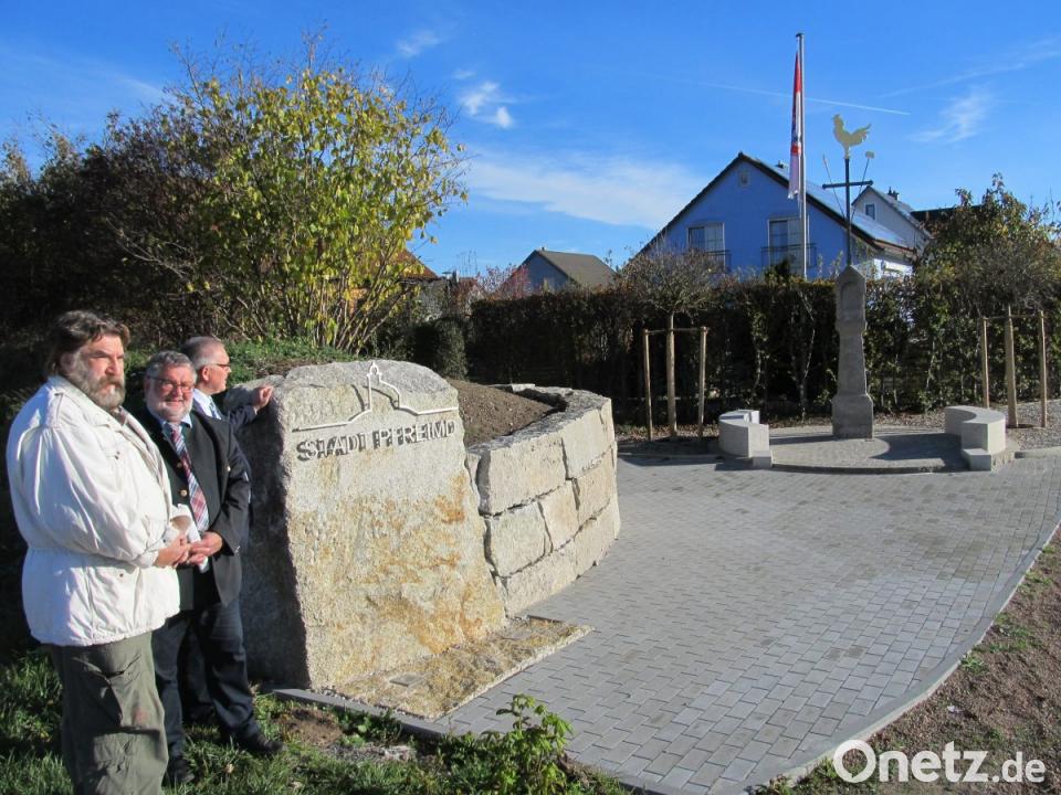Die alte Feindschaft der beiden Nachbarstädte ist schon lange Geschichte, und so ist zur Fertigstellung des restaurierten Denkmals samt Ensemble auch Nabburgs Bürgermeister Armin Schärtl geladen. Immerhin wird das Pfreimder Hahnenkreuz auch jetzt wieder von Bäumen flankiert, die auf des Konto der Amtskollegen von Nabburg und Pfreimd gehen. Jetzt sind es Kugelahorn-Bäume, die ihre Vorgänger, die von den Bürgermeister Rudolf Scharf und Werner Bernklau gepflanzten Kastanien, ersetzen.