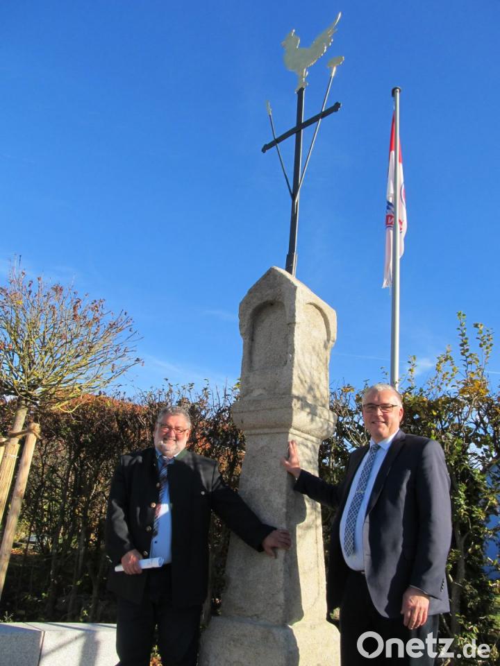 "Ich kann nur gratulieren zu diesem gelungenen Ensemble", sagt Schärtl, der genauso wie der Pfreimder Bürgermeister Richard Tischler die alte Sage zum Hahnenkreuz mit Humor und einer Spur Zweifel betrachtet. Dazu musste das Denkmal allerdings zunächst um etwa sieben Meter versetzt werden.