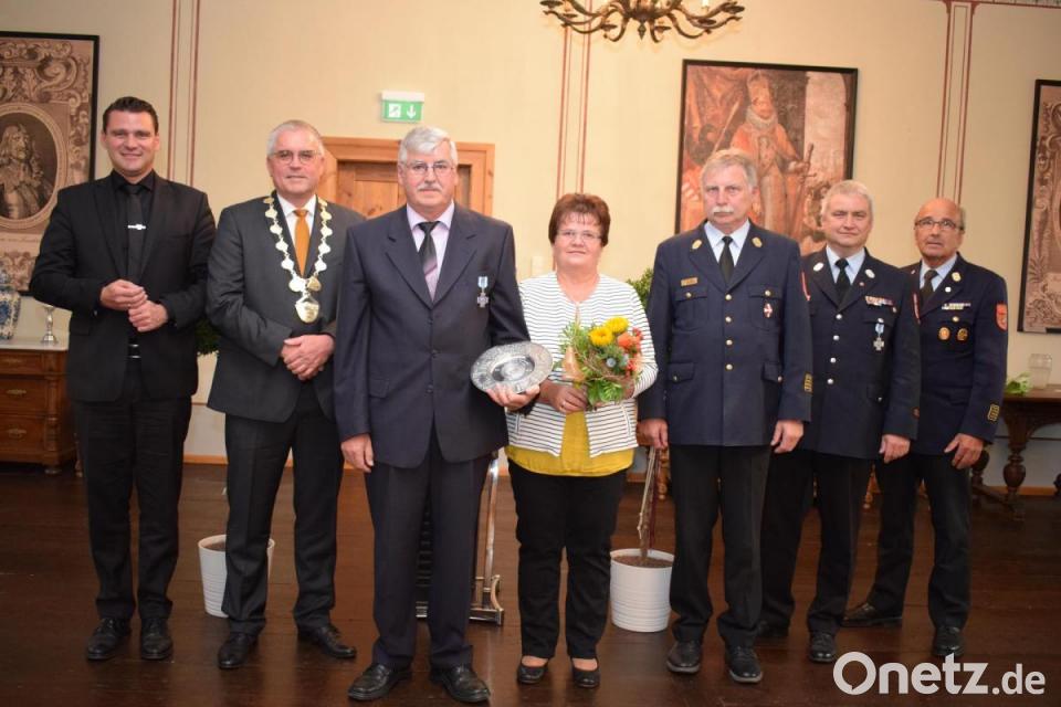 „Er hat sich damit den Dank und die Anerkennung erworben, die ihm die Stadt Pfreimd und die Bürgerschaft mit der Verleihung des Ehrentellers aussprechen“, gratulierte Bürgermeister Tischler zu der besonderen Auszeichnung. Die Verdienste von Johann Schönberger würdigte auch Landrat Thomas Ebeling. „Wir bauen auf das Ehrenamt für den Brandschutz in der Fläche. Ihr Vorbild soll gerade junge Leute zum Dienst in der Feuerwehr anspornen“, so der Landrat.