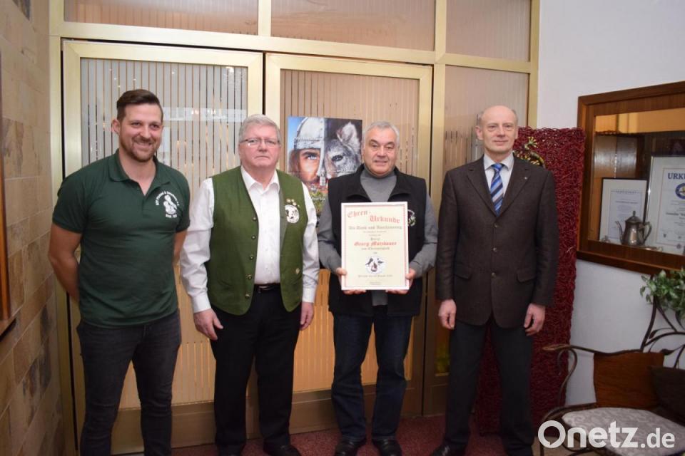 Erneut konnte Thomas Zwack sein Europachampionat in Frankreich verteidigen. Wie auch im Vorjahr holte sich Hermann Wegerer in Leipzig die Deutsche Meisterschaft der Luchstauben. Die Jugendabteilung unter der Leitung von Daniel Thoma besuchte am Ostersamstag das Seniorenheim und überbrachte den Bewohnern einen süßen Gruß. Diese schöne Geste werde von den Bewohnern sehr geschätzt. Keinen leichten Stand hatte Hans Schmid, der Zuchtwart für Hühner und Wasservögel. Es werde immer schwieriger, bei Ausstellungen geeignete Preisrichter zu finden. Dritter Bürgermeister Hubert Betz gratulierte dem Verein zu seiner erfolgreichen Arbeit. Er sagte auch weiterhin die Unterstützung der Stadt Pfreimd zu. Dem Vorsitzenden Hans Kiener blieb es vorbehalten ein Mitglied auszuzeichnen, das über Jahrzehnte eine wichtige Stütze des Vereins war und den Verein entscheidend geprägt hat. Über 30 Jahre stand Georg Mutzbauer an der Spitze der Jugendabteilung und hat den österlichen Besuch der Abteilung im Seniorenheim ins Leben gerufen. Seit 25 Jahren ist er zudem zusammen mit seiner Frau Resi für den Schmuck der Ausstellungshalle zuständig. Für diese vielen Verdienste ernannte ihn der Geflügelzuchtverein zu seinem Ehrenmitglied. Kiener überreichte ihm die Ernennungsurkunde.