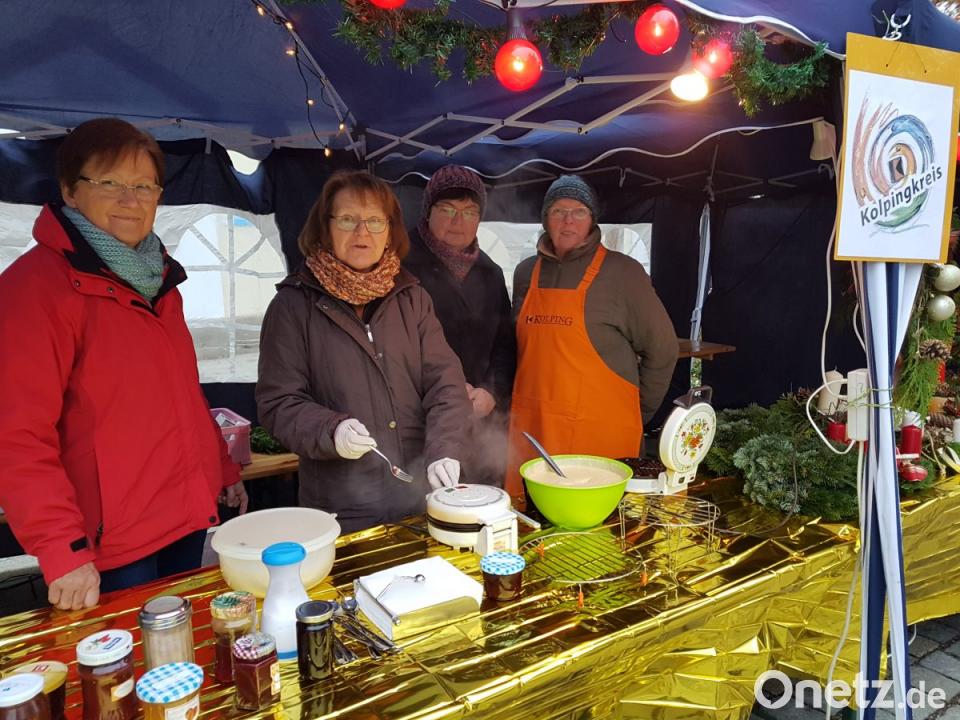 Aufwärmen konnten sich die Besucher bei Glühwein, Apfelpunsch, Feuerzangebowle, Wintercocktails oder Honigmet. Es gab selbst gebackene Plätzchen, Apfelkücheln, Waffeln, Flammkuchen und Maroni, ebenso überbackene Knoblauchbaguette, "heiße Weiherner", Pfreimder Knackersemmeln und Wildgulasch. Bei Geschenkartikeln wurde jeder fündig: Advents- und Weihnachtsschmuck, handgeschnitzte Krippen, Weihnachtskarten, Papiertäschchen mit gefüllten Pralinen, Liköre und Honigprodukte waren zu haben, ebenso Mützen, handgestrickte Socken und Mistelzweige. Der Kolping-Familienkreis "Familientreff" organisierte für die kleinen Gäste Dosenwerfen und ein Glücksrad. Eine Attraktion waren das "kleine Jagdmuseum", der Falkner mit seinen Greifvögeln und der Auftritt der Jagdhornbläser. Einmalig ist wohl die Tatsache, dass fast alle Stände und Buden von ehrenamtlich Aktiven betreut wurden, was eine willkommene Ausnahme zu den kommerziellen Weihnachtsmärkten darstellte.