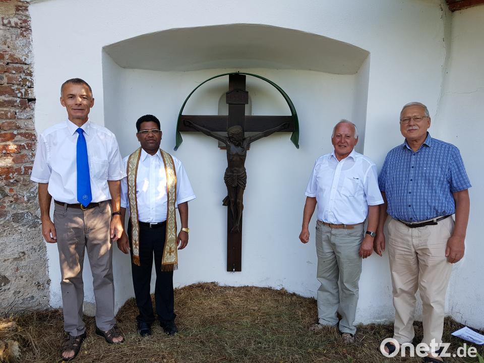 Dem feinen Gespür und der Tatkraft von Christoph Schnabel vom Heimatkundlichen und Historischen Arbeitskreis "Der Stadtturm" und Rosalie Pamler ist es zu verdanken, dass dieses Stück der Lokalgeschichte gerettet werden konnte. Sie sicherten das große Kruzifix und restaurierten es liebevoll, so dass es wieder im Originalzustand erstrahlt.