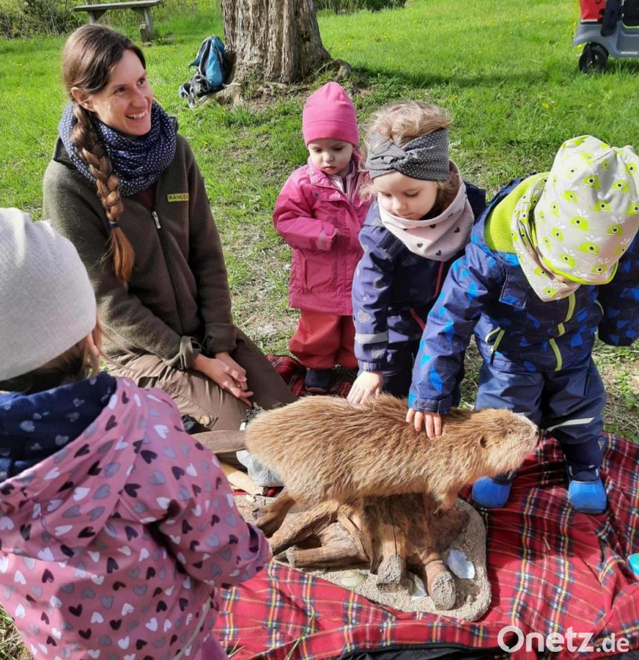 Naturbegegnungstage werden im Kindegarten und Krippe sehr groß geschrieben. So organisierte die Rangerin vom Naturpark Oberpfälzer Wald mit den Kindergartenkindern eine Exkursion am Eixelberg mit dem Thema: „ Superhelden des Waldes“. Auch die Krippenkinder des Franziskus-Kindergartens waren unterwegs und erkundeten das nahe gelegene Ufer der Pfreimd. Von der Rangerin lernten sie einiges über den Biber. Die Kleinen lauschten interessiert den kindgerechten Erklärungen und durften ein ausgestopftes Exemplar streicheln und untersuchen. Danach wurden die Kinder selbst aktiv, sammelten Stöcke und bauten eine Biberburg auf der Wiese.