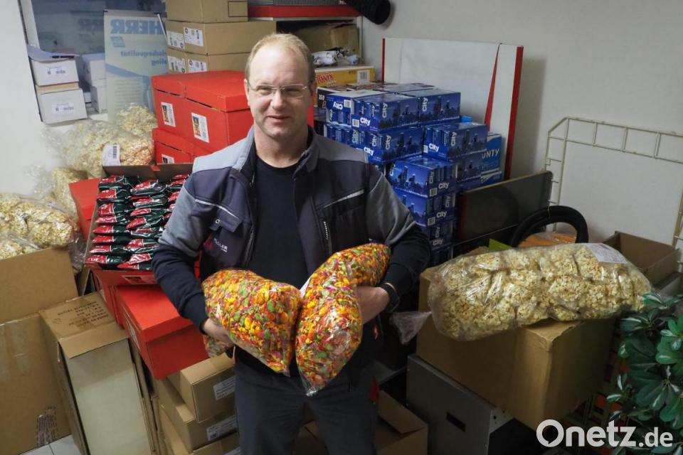 Die 500 Kilogramm Bonbons, die dann auf die Zuschauer niederregnen, müssen erst einmal vorfinanziert werden. Seit Dezember stapeln sich außerdem Tüten mit Popcorn und Chips im Keller des Elektrogeschäfts Hägler. Wer sich hier bedient, kann etwas in die Spendenbox werfen. Was nach Abzug der Unkosten an Einnahmen übrig bleibt, wird aber nicht für Konfetti und Co. verpulvert, sondern für einen guten Zweck gespendet. "In 25 Jahren ist da wahrscheinlich schon eine Summe von 75 000 Euro zustande gekommen", hat Hägler nachgerechnet.
