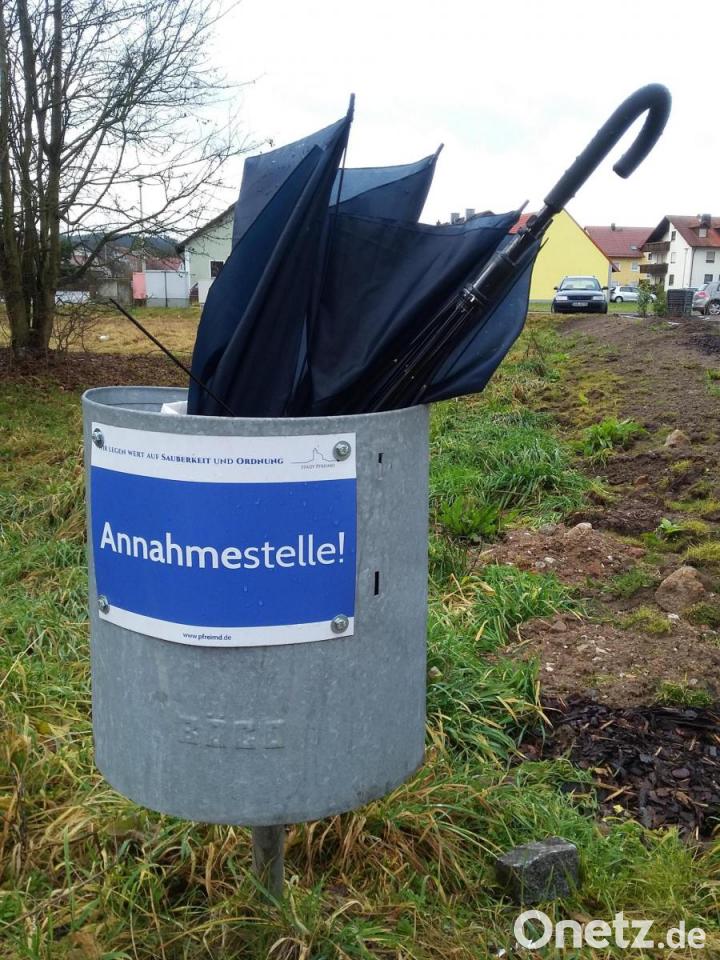 Ob Pizza-Schachtel oder ein kaputter Schirm: "Ich bin für jeden Dreck zu haben", wirbt ein Pfreimder Abfallkorb um die Gunst von Passanten. Die sollen lästigen Müll nicht einfach fallen lassen, sondern sich die Mühe machen, ein paar Schritte weiter zu gehen. Als "Lockmittel" setzt die Stadt auf flotte Sprüche in weißer Schrift auf blauem Grund. Wer sich auf eine "Tour de Müll" durch die Stadt begibt, kann zehn pfiffige Appelle oder Anmerkungen entdecken.