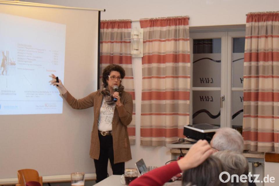 Die Fachanwältin für Erbrecht ist fast täglich mit der Materie befasst. Sie machte an einem fiktiven Fall die Gesetzeslage deutlich. Eine Person wird zum Pflegefall und kommt ins Pflegeheim, das dafür 3500 Euro im Monat in Rechnung stellt. Die Rente der betroffenen Person und das Pflegegeld decken zusammen aber nur 2400 Euro. Es bleibt eine Deckungslücke von 1100 Euro, die von der zu pflegenden Person getragen werden muss.