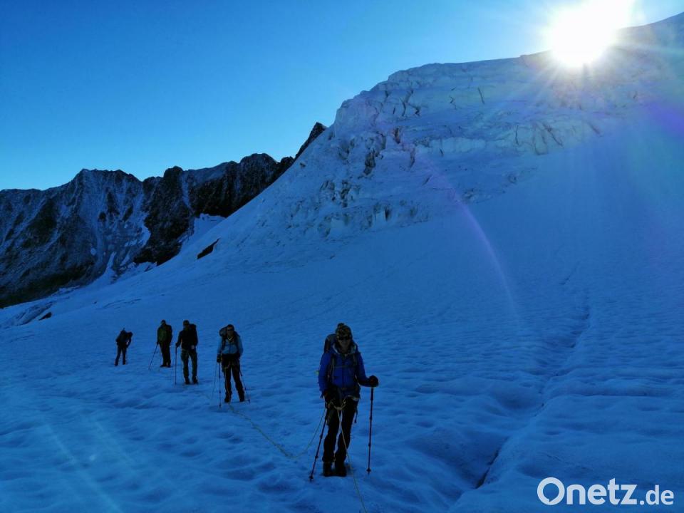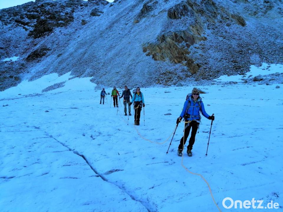 Schon am zweiten Tag steht die Gruppe vor einer senkrechten Wand, der Hochvogel ist gestrichen, "bei Gewitter zu gefährlich", heißt es, schließlich sind die Wanderer mit einem Stahlseil unterwegs. Auch der nächste Tag von der Hanauer Hütte über das Pitztal und den Mittelbergferner zur Braunschweiger Hütte hat es in sich. Nach Regen und Gischt von der Sturzbachklamm sind die Wanderer froh ins Warme zu kommen. Doch die Nacht ist kurz: Schon um 4.30 Uhr ist Abmarsch bei sternenklarem Himmel. Mit Stirnlampe geht es bei minus 3 Grad los zur Wildspitze. "Dieser Tag war ein Traum", schwärmt Kerstin Birner. "Gänsehaut-Feeling pur", sei das, wenn dort oben die Sonne aufgehe, die Konturen der Berge aus dem Morgennebel auftauchen.