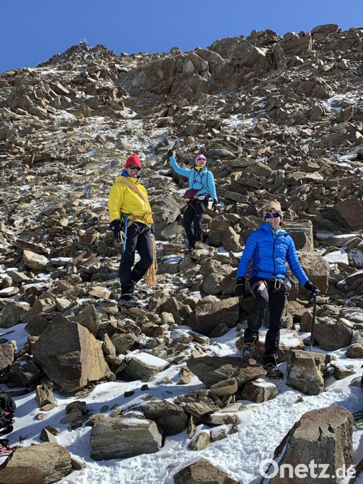 Mit 53 und 51 Jahren waren Karola und Kerstin aber bei weitem nicht die Ältesten in der Gruppe, in der am Starttag erst einmal jeder seinen Rucksack leeren musste. Das Deo kam raus, der Müsli-Riegel genauso wie mehr als eine Unterhose zum Wechseln. "Das brauchst du nicht", stellte der Bergführer immer wieder klar. Es galt Gewicht zu sparen für den Eispickel, die Steigeisen und die Kletterausrüstung. Nicht weniger penibel sprang der Profi mit den Rucksäcken der Männer um, deren Ausrüstung inklusive Eispickel auch nicht mehr als 9,5 Kilogramm auf die Waage bringen durfte. Im beständigen Tempo ging es dann hoch zum Prinz-Luitpold-Haus, fünf Stunden, zur Eingewöhnung. "Viel Unterhaltung gab es unterwegs aber nicht, wir haben die Luft für etwas Anderes gebraucht", gesteht Kerstin Birner. "Auf einer Höhe über 3000 Meter ist man doch etwas kurzatmig."