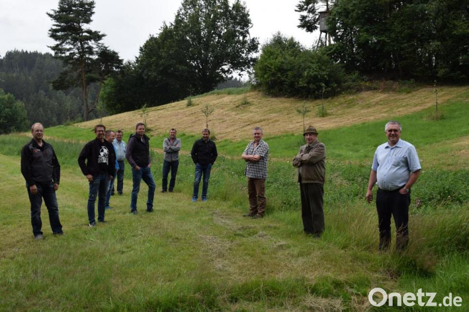In den Fluren befinden sich oft kleinere Grundstücke, die für eine landwirtschaftliche Nutzung ungeeignet sind. Die Folge ist eine Verbuschung, welche der Flora und Fauna wenig dienlich ist. Die Blühpflanzen werden zurückgedrängt und die Artenvielfalt geht zurück. Dieser Entwicklung wollen die beiden Jagdpächter Dietmar und Albert Maier in ihrem Jagdgebiet um Hohentreswitz gezielt entgegenwirken. Auf mittlerweile vier Flächen legten sie Streuobstwiesen an, die mit Blumenwiesen bereichert worden sind. Auch die Stadt Pfreimd verfügt in der Gemarkung Rappenberg über ein solches Grundstück, das für diesen Zweck geeignet ist. Dem Anliegen der Jäger, dieses Grundstück in eine Streuobstwiese umgestalten zu dürfen, kam der Bauausschuss gerne nach. Jetzt überzeugte sich das Gremium vom Erfolg dieser Maßnahme. Dietmar Maier schilderte die kräftezehrenden Arbeiten, welche notwendig waren, bis die ersten Bäume gepflanzt werden konnten. Mit Rat und Tat wurden sie dabei von Mitgliedern des Obst- und Gartenbauvereins Pfreimd unterstützt, deren Vorsitzender Reinhold Kumeth sich als ausgewiesener Fachmann in den Dienst der guten Sache stellte. Auch die Kinder vom Kindergarten St. Martin waren begeistert bei der Sache und legten tatkräftig mit Hand. Auf diese Weise wurden 64 Obstbäume gepflanzt. So entstanden vier Biotope, die Mensch, Tier und Pflanzen gleichermaßen Nutzen bringen. Bürgermeister Richard Tischler dankte den beiden Waidmännern für diese Bereicherung der Natur und empfahl diese gelungene Maßnahme zur Nachahmung.