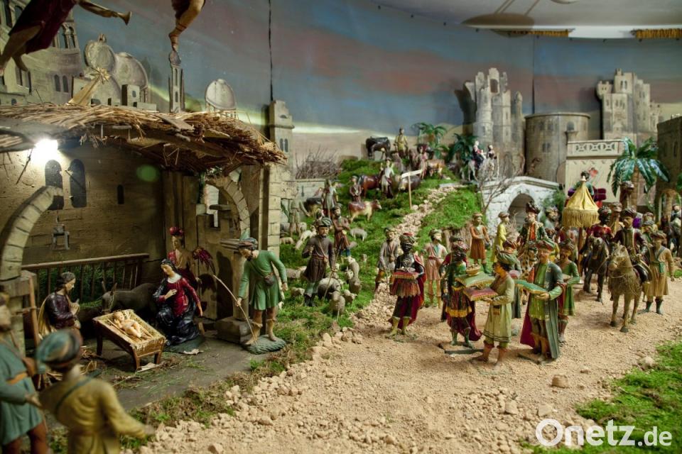 Gleich in der Nähe ziehen in einer prächtigen orientalischen Prozession die Drei Könige heran um ihre Gaben zu bringen. Mit einem großen Gefolge aus zahlreichen Diener, Soldaten sowie etlichen Tieren wie Pferden, Kamelen und einen Elefanten wird volkstümlich versucht die Wichtigkeit der Geburt Jesu darzustellen. Eine absolute Besonderheit ist die Darstellung des Kindermordes von Betlehem durch den König Herodes. Zahlreiche Kinderleichen, teilweise auf drastische Art und Weise verstümmelt, liegen verstreut auf dem Boden und die geschockten Eltern taumeln zwischen ihnen herum. Hier zeigt sich eine erschreckende Parallele zur Gegenwart, denn bis heute schrecken skrupellose Machthaber vor keinem Mittel zurück, wenn sie ihre Macht gefährdet sehen.