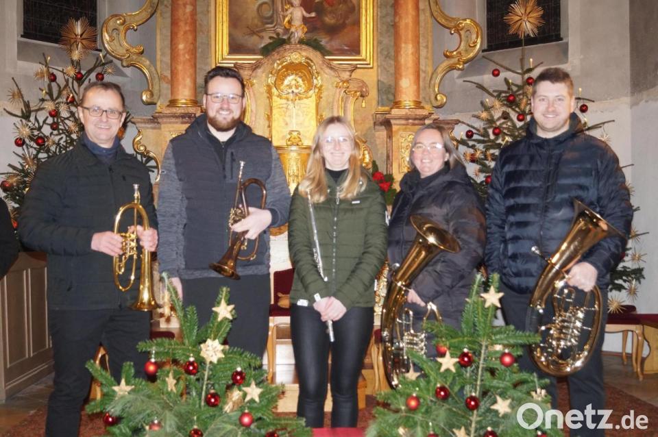 Die Hausherren und Gastgeber unter der Leitung von Christian Dorner sangen eindrucksvoll „Weihnacht“, „Vom Himmel hoch“ und „Am Weihnachtsbaum“. Dazwischen sorgten die Flügel- und Tenorhörner sowie die Flöte der „Ruiter Bläser“ klangvoll und hell für Abwechslung, boten „O Josef, liebster Josef“ und den „Andachtsjodler“ von der Empore herab dar.