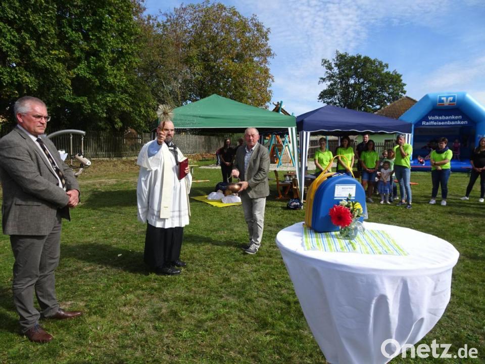 Pfarrer Johann Spitzhirn oblag dann die kirchliche Segnung des Spielplatzes sowie des für die Ortschaft gespendeten Defibrillators. Mit der Lesung aus dem Markusevangeliums („Lasset die Kinder zu mir kommen“) stellte er einen Bezug zum Spielplatz her.