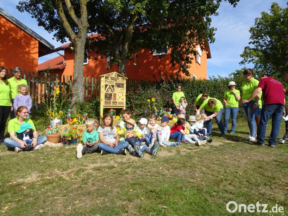 Mit einem gelungenen Insektenhotel bereicherte die Kindergruppe den neuen Spielplatz. Nadine Maier nahm die Gelegenheit wahr, um die neu gegründete Kindergruppe mit ihren Aktivitäten vorzustellen.