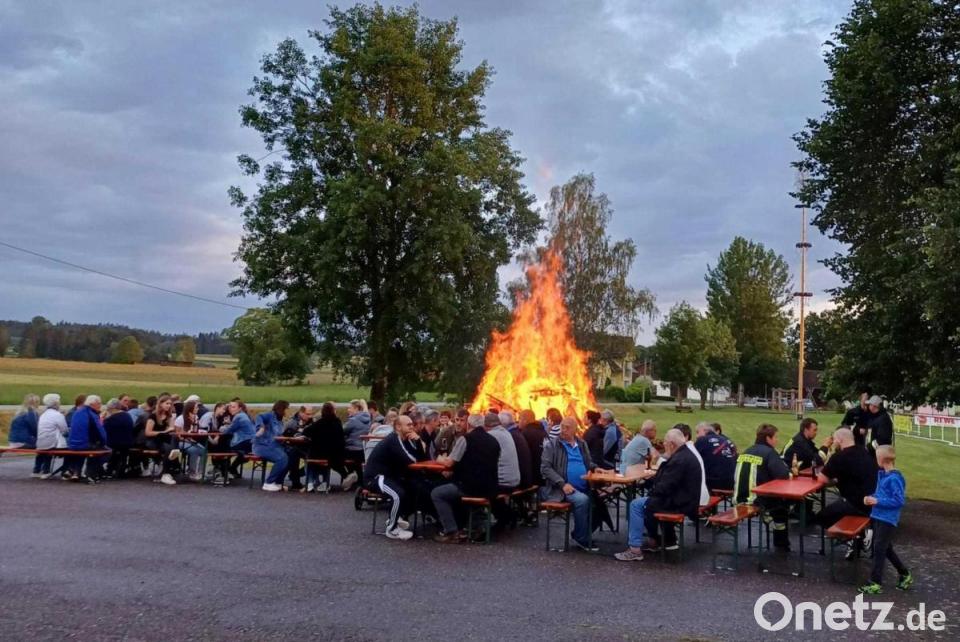 Nach dem Entzünden züngelten sich die Flammen noch bei Tageslicht durch den Holzhaufen, das Feuer spendete Wärme. Die Sicherheit garantierten Mitglieder der Freiwilligen Feuerwehr Pfrentsch. Die Pfrentscher Dorfgemeinschaft genoss die gesellige Unterhaltung mit Musik und leckeren Grillspezialitäten.